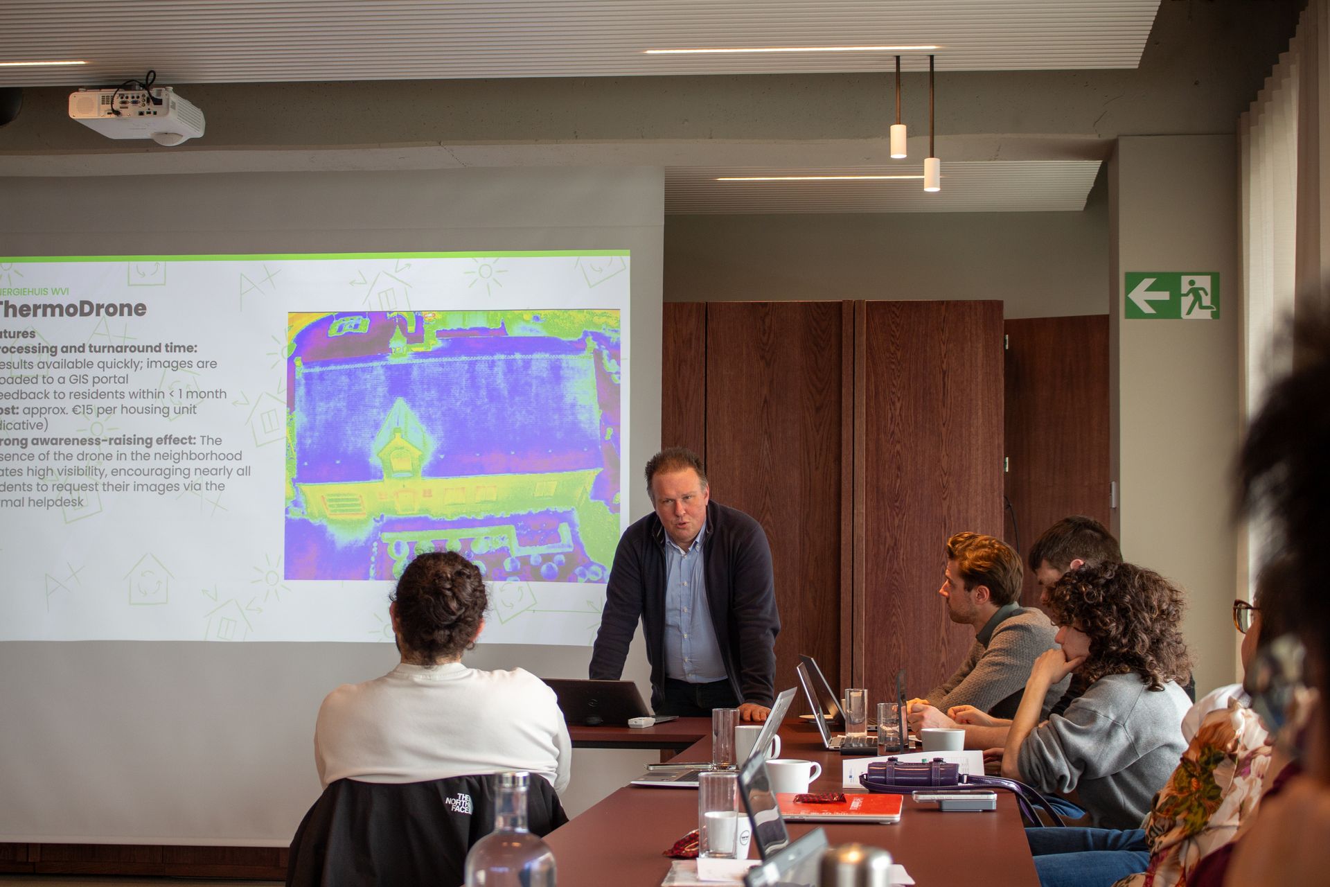 As the host and organiser of this partner meeting, West-Vlaamse Intercommunale (WVI) took the group outside for a live demonstration of their thermo drone - a UAV equipped with thermographic imaging technology that maps heat loss from buildings while hovering overhead. By identifying exactly where energy escapes from homes, the drone helps prioritise which households need support most urgently. A powerful example of how technology can drive more targeted and effective interventions.